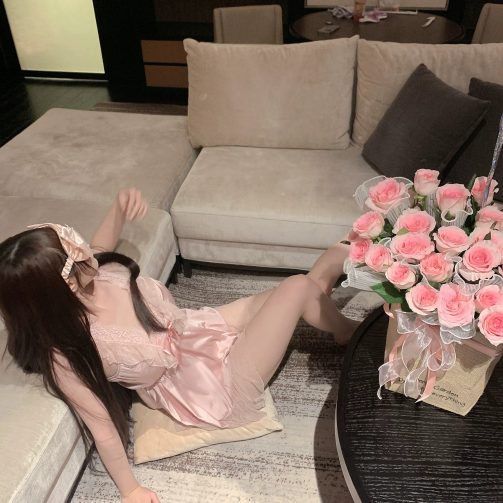 「纯爱战神」粉色性感吊带睡裙sy-38